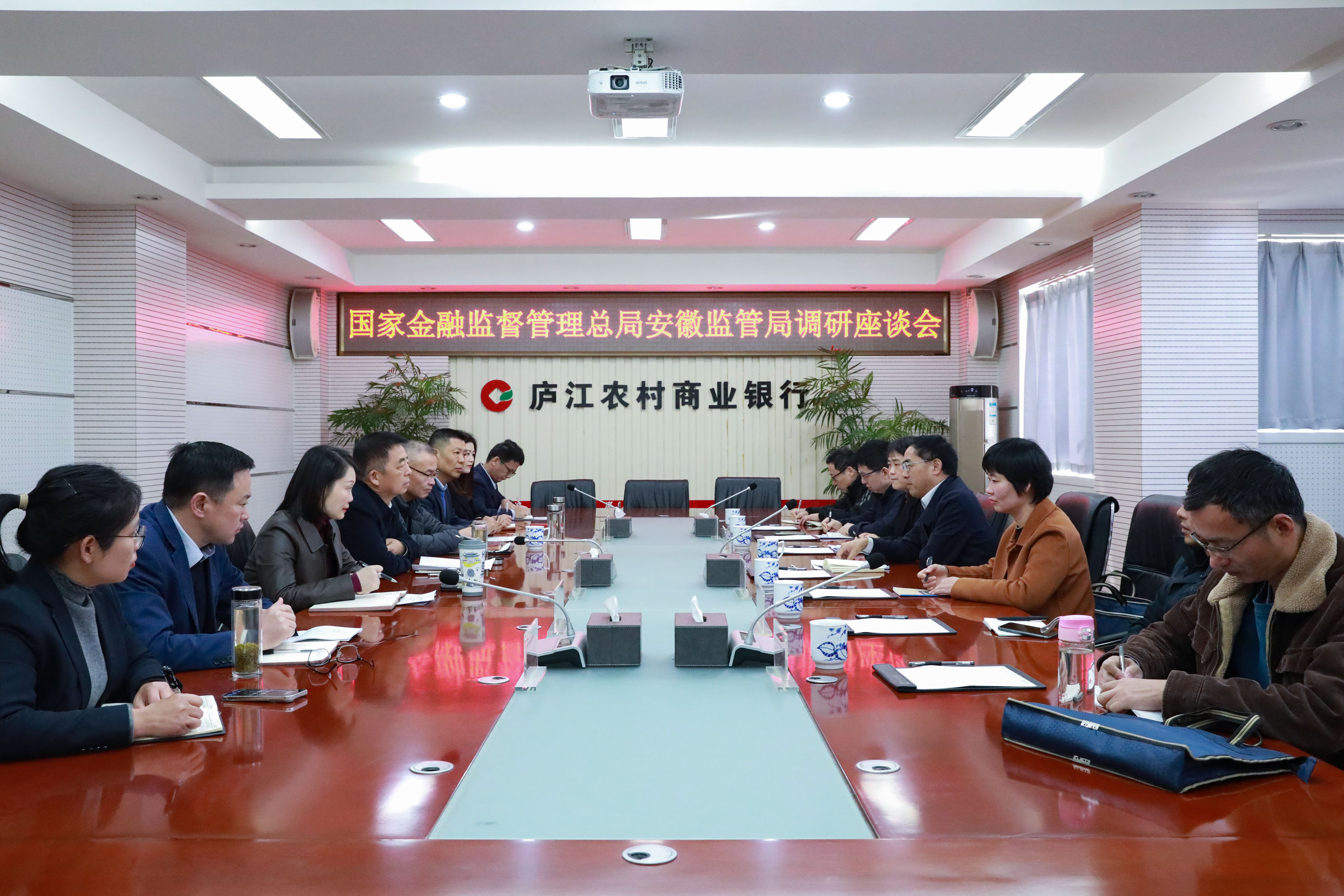 11月18日,国家金融监督管理总局安徽监管局党委委员、副局长王鑫一行到庐江农商银行调研。