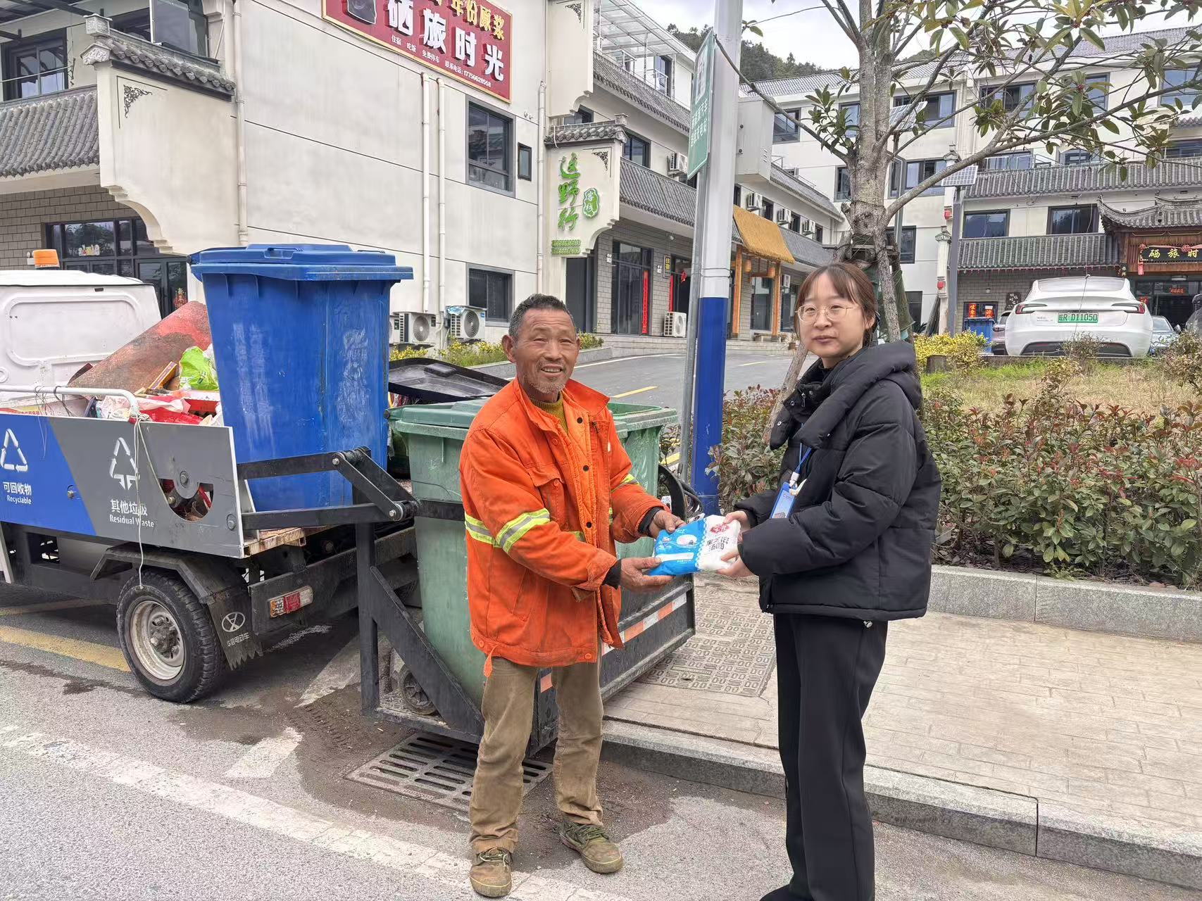除了服务好厅堂客户,石台农商银行更以元宵佳节为契机,深入践行党建引领、金融为民的责任与担当,组织党员干部及工作人员走出网点、走上街头、走进社区,开展党建公益慰问活动。他们带着精心准备的汤圆和节日祝福,走访慰问了坚守岗位、默默奉献的环卫工人、公安干警,以及辖区内孤寡老人、困难群众。一句句暖心叮嘱、一份份真切关怀,让户外劳动者与特殊群体在元宵佳节感受到实实在在的温暖,切实拉近了金融机构与群众之间的距离。