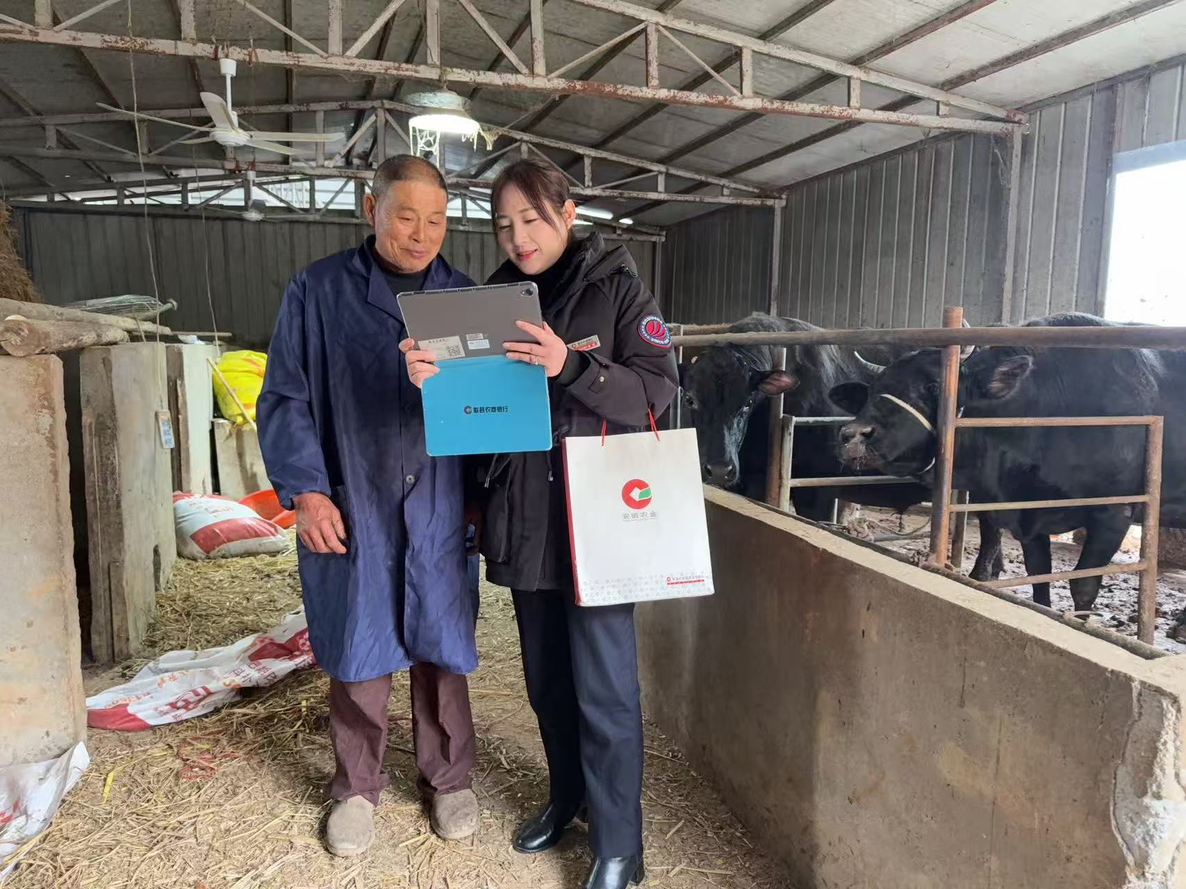 据了解江老板是当地深耕肉牛养殖产业的“老行家”,多年来凭借扎实的技术和诚信经营,养殖场规模不断扩大。为保障养殖产业稳健发展,他早已为存栏肉牛足额投保农业保险,为养殖事业筑牢风险防线。近期,随着春季来临,为进一步提升肉牛品质、扩大养殖规模,江老板计划采购优质牛犊、储备足量饲料,然而大规模采购带来的资金支出,让他瞬间陷入资金周转困境。正当江老板一筹莫展之际,歙县农商银行徽城支行工作人员通过走访服务,为他带来了希望。