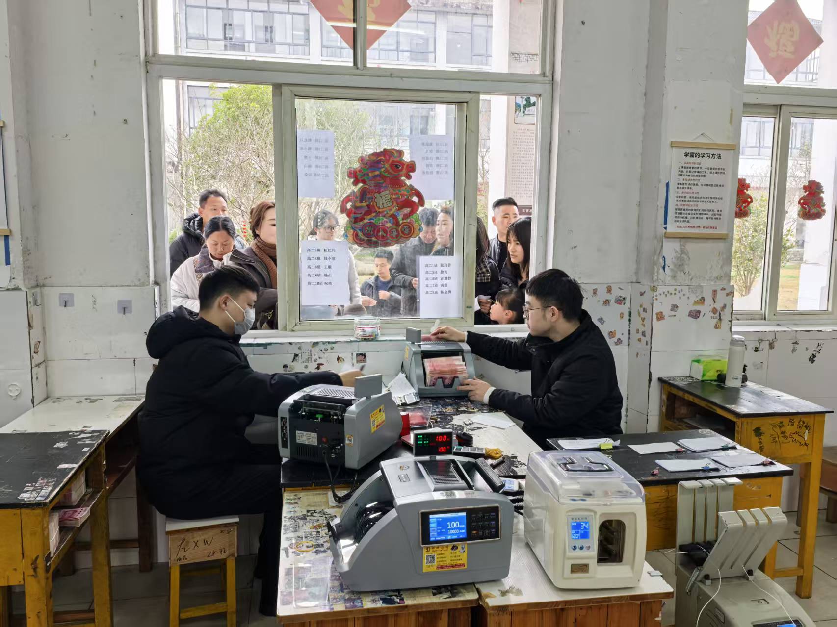 近日,九华支行组织员工前往安徽九子山公学,提供上门集中收取学费的金融服务。工作人员在校内设立专门窗口,学生及家长们有序排队办理缴费业务,从核对信息、清点款项到完成入账,整个流程高效顺畅,并向学生家长普及防诈骗等金融知识。此举有效解决了家长往返银行网点的奔波,减轻了学校财务工作压力,获得了师生与家长的一致好评。