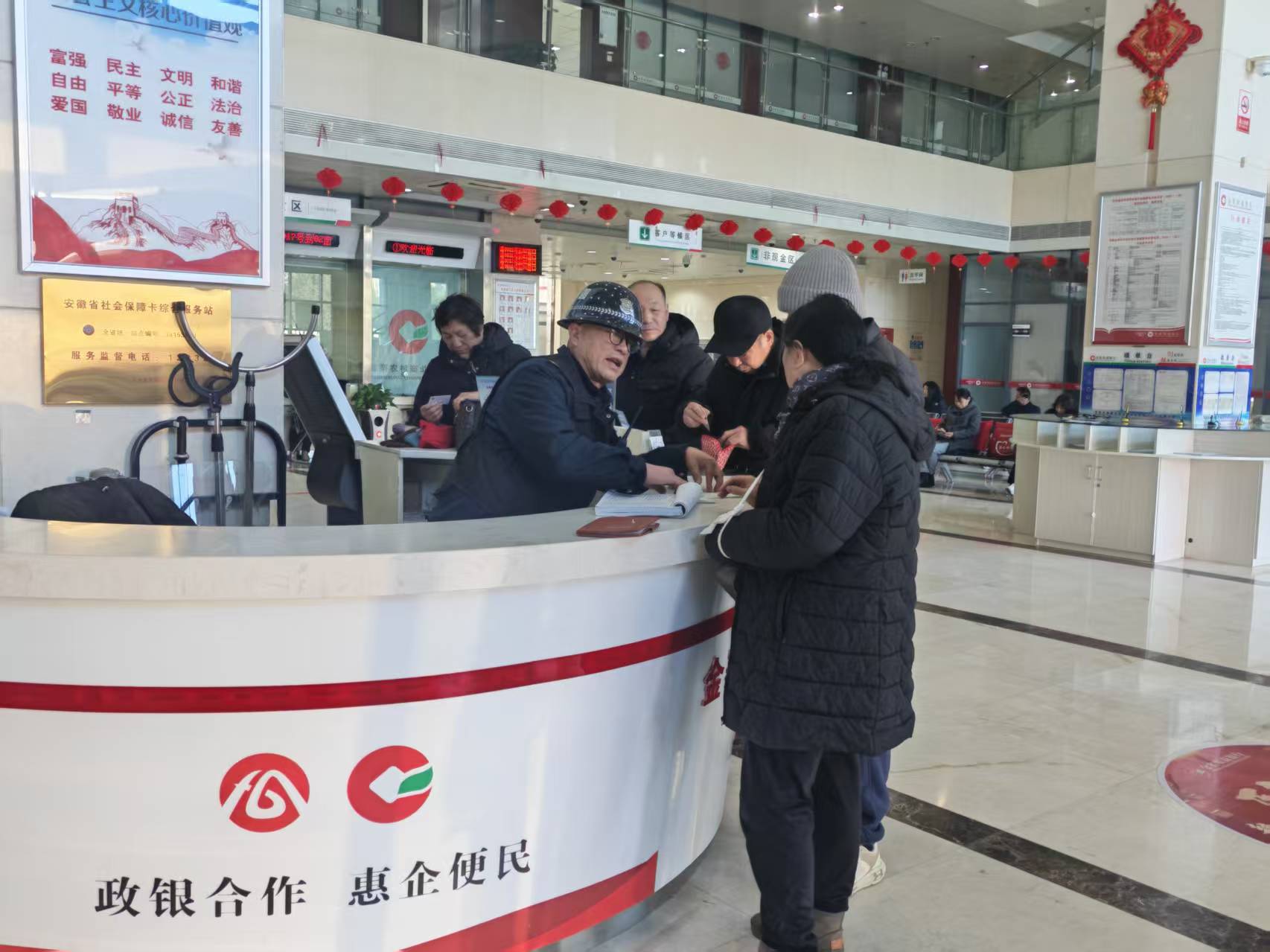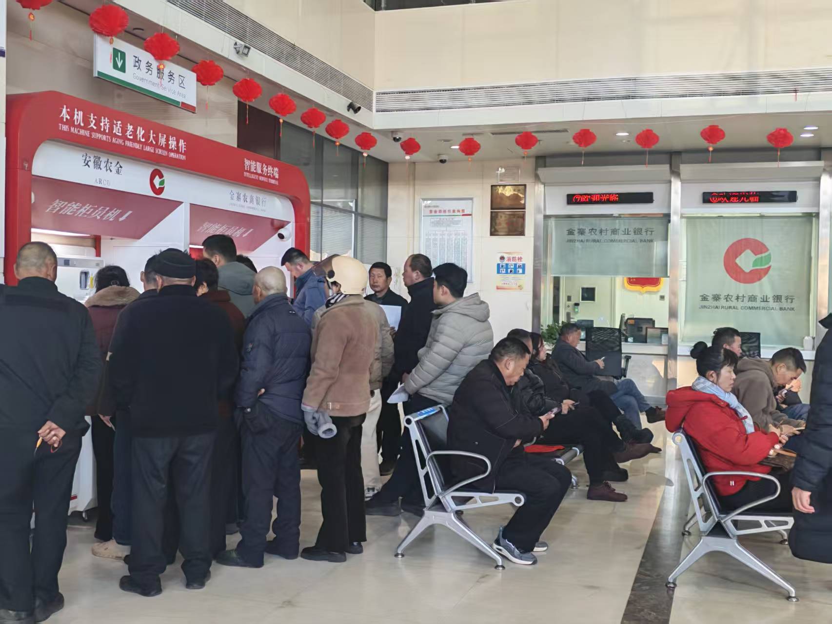 年关将至,返乡人员增多,资金结算、社保卡业务、保险办理和开门红营销集中到来,金寨农商银行迎来了一年中最繁忙的时候。营业部大厅里,人工窗口和智能柜员机同时满负荷运转,所有窗口全部开放、设备不停运行,服务不断提速。通过弹性排班、全员在岗、智能分流、开通绿色通道等方式,全力保障全县群众办理各项金融业务。