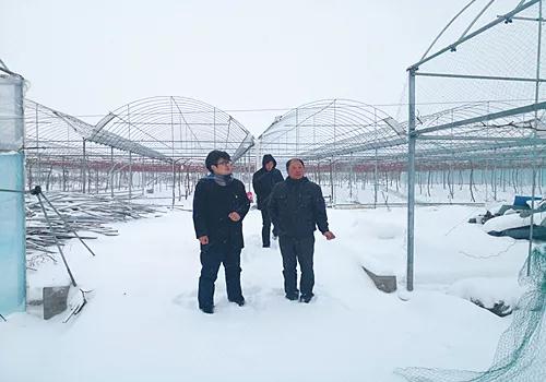 在暴雪中,阜阳市海丰农业科技有限公司蔬果大棚被压塌。1月25日,颍淮农商银行组织人员冒雪到该公司大棚基地实地查看受灾情况,争取通过方便快捷的金融支持,尽力帮助该企业挽回损失。