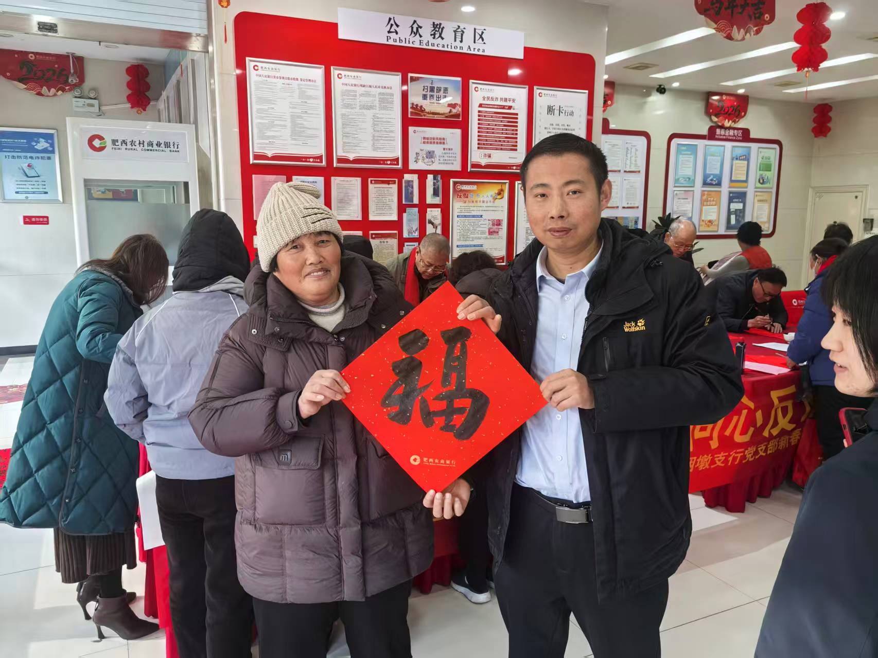 2 月 3 日至 5 日,肥西农商银行精心策划了 “笔墨传情迎马年,农商送福暖民心” 系列春联下乡活动,活动以网点为阵地、向社区延伸,相继走进营业部及烟墩、新路、肥光等 12 处网点与社区,将满满的新春祝福送到居民家门口,在辖区内掀起了一场迎新春、品年味、领福字的温馨热潮。