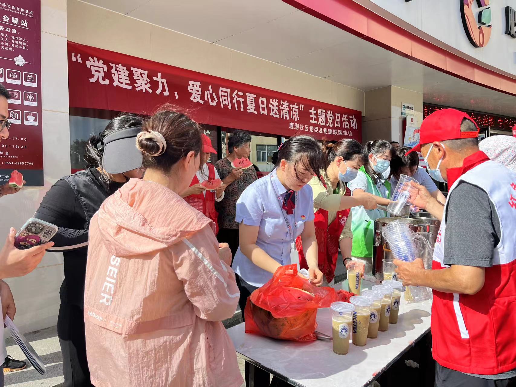 7月25日,肥西农商行与庭湖社区党委联合开展“党建聚力 爱心同行 夏日送清凉”主题党日活动。活动现场,该行工作人员和社区工作者为路过的环卫工人、小区保安、物业保洁等人员送上酸梅汁、绿豆汤、西瓜等防暑降温物资。