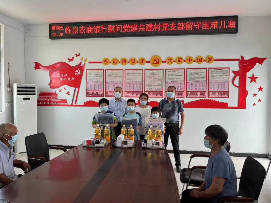 6月3日,临泉农商银行组织开展2022年“六一”“端午节”慰问联盟支部儿童活动,为辖内20个乡镇(街道)23个联盟村支部的69名留守、困难儿童购置了书包、保温杯、文具盒、笔记本等文具。农商银行各党支部、联盟支部的负责人陪同乡镇(街道)负责同志慰问儿童,勉励他们用心学习知识、德智体美劳全面发展,努力成长为家庭与社会的栋梁之才。