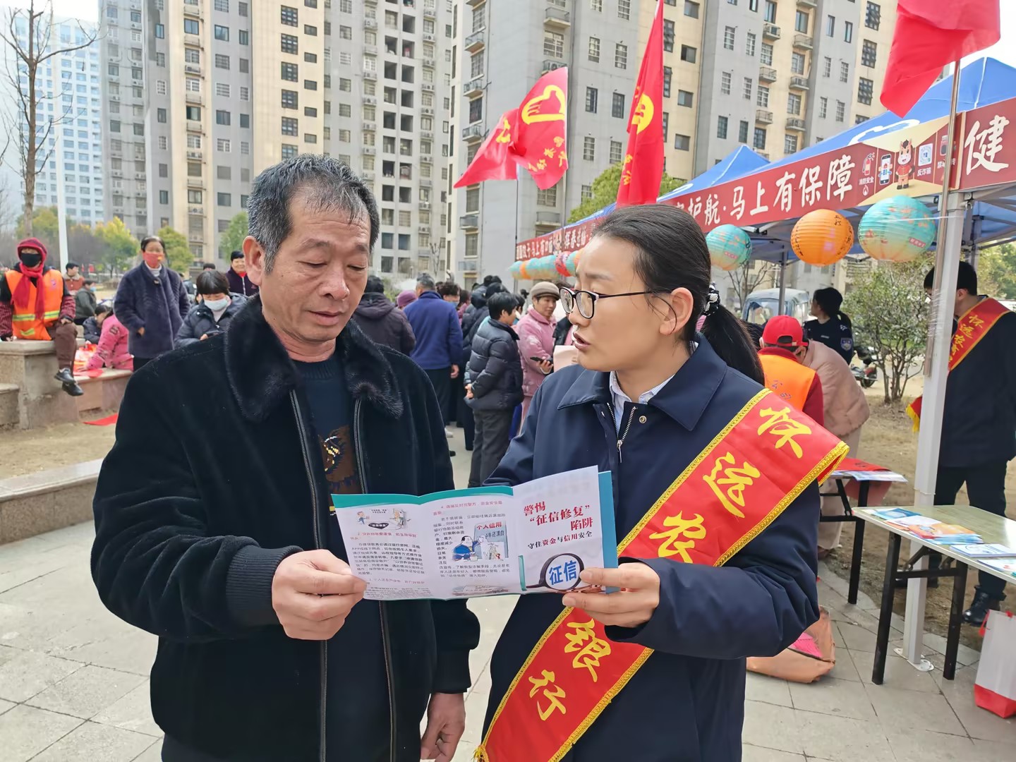 活动前,我行与社区新时代文明实践站、县青年志愿者协会协同策划,设置“金融咨询服务台”,选派业务骨干开展现场宣传。活动聚焦“一老一小”、个体工商户等重点群体,围绕防范电信诈骗、识别非法集资、普及存款保险制度、新版人民币防伪知识等内容,结合真实案例进行讲解,进一步增强居民金融风险防范能力。同时,积极介绍我行普惠金融信贷产品与便民支付服务,让居民感受到家门口金融服务的便利与温度。