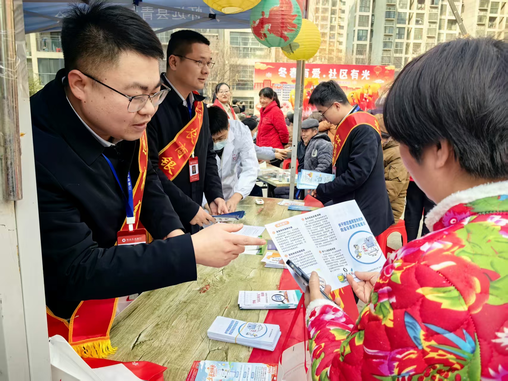 为切实履行社会责任,提升社区居民金融安全意识,近日,怀远农商银行积极参与新河社区文苑小区举办的“冬春有爱·社区有光”主题志愿服务活动,将金融知识送到居民身边。