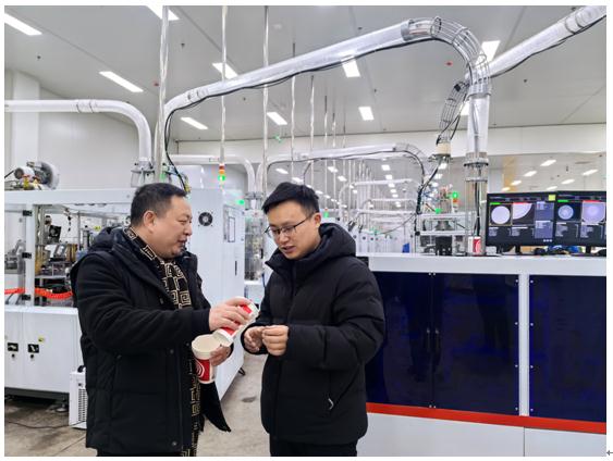 走进东至县大渡口镇安徽格睿包装材料有限公司生产车间,智能化、规范化的生产线映入眼帘,机械臂正忙着将可降解纸杯码成齐整的方阵,这些印有专利碟纹的“皖造名片”即将被发往沪苏浙地区。