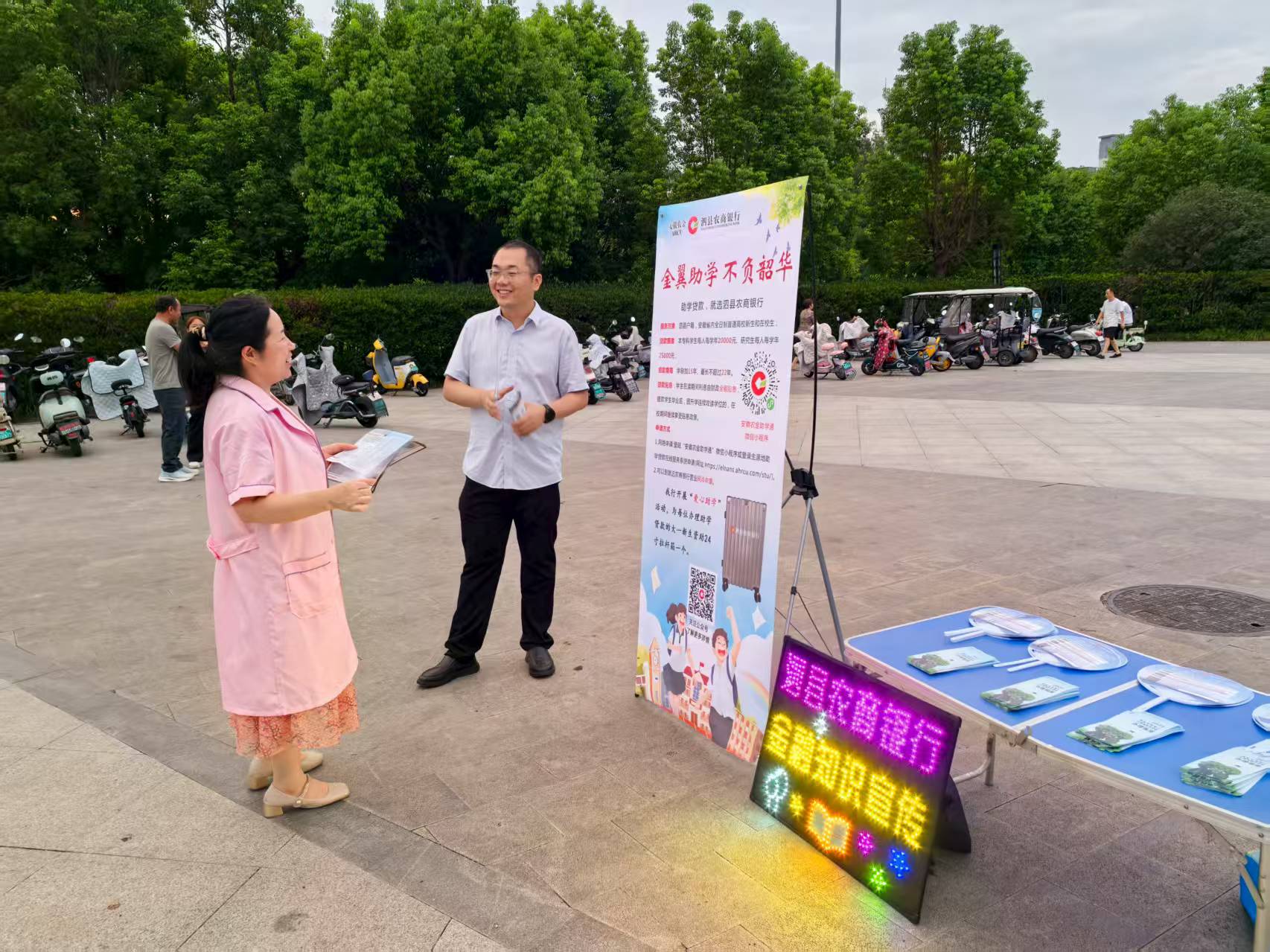 泗县农商银行工作人员在府前广场、泗中广场、清水湾公园、中央公园4处人流量较大的公共场所设立宣传点。在宣传现场,工作人员摆放宣传展板、折叠桌、助学贷款宣传折页,热情地向过往群众发放宣传扇、宣传折页等。这些宣传资料内容丰富、图文并茂,详细介绍了助学贷款的申请条件、办理流程、还款方式等信息,方便群众随时查阅。对于有办理意向的群众,工作人员将持续跟踪服务,从协助准备申请材料到指导填写表格,再到跟进贷款审批进度,全程提供“一对一”的贴心服务,直到业务顺利办理。