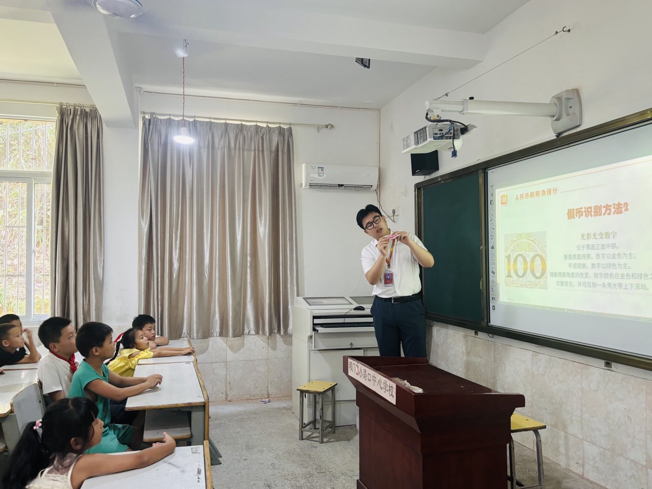 播撒知识种子入童心。在学校,围绕水印、安全线、光彩光变油墨面额数字等人民币防伪特征,宣传志愿者以“找一找”“摸一摸”“辨一辨”的互动形式,手把手教学生们快速识别假币。色彩鲜明的PPT、有趣的问答、图文并茂的折页,让金融知识变得更加直观、易懂。