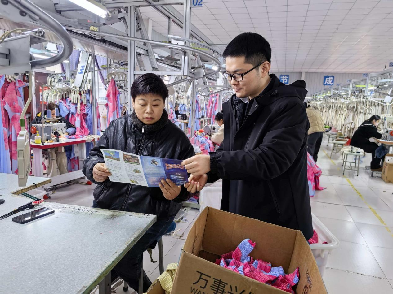 活动当天,古沟支行的工作人员走进聚通服饰的生产车间与员工休息区,针对企业员工,开展了面对面的反诈知识普及。工作人员重点剖析了近期高发的“冒充电商物流客服退款”“刷单返利”“网络贷款”以及“冒充公检法”等诈骗类型。