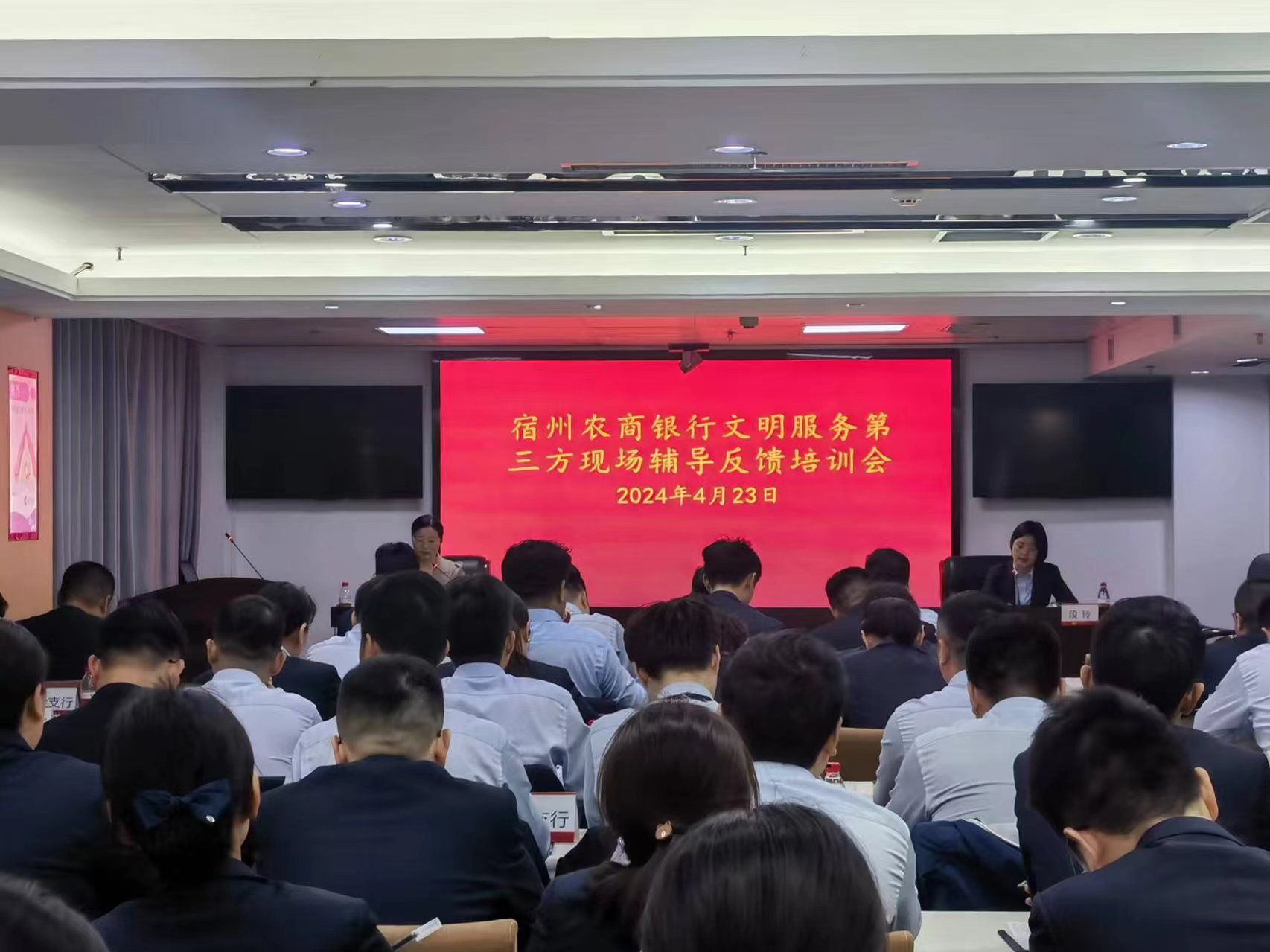 4月23日下午,宿州农商银行在总行六楼会议室召开文明服务第三方现场辅导反馈及培训会。