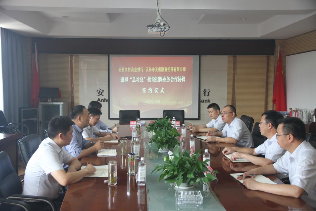 8月19日上午,天长农商银行与天长市天振融资担保有限公司举行《银担“总对总”批量担保业务合作协议》签约仪式。