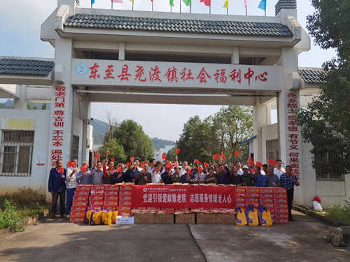 10月24日,重阳节期间,东至农商银行组织党员深入尧渡镇社会福利中心开展“党建引领爱献敬老院,志愿服务情暖老人心”重阳节慰问活动,给福利中心的老人们送去方便面、毛巾等慰问品以及节日的美好祝福。