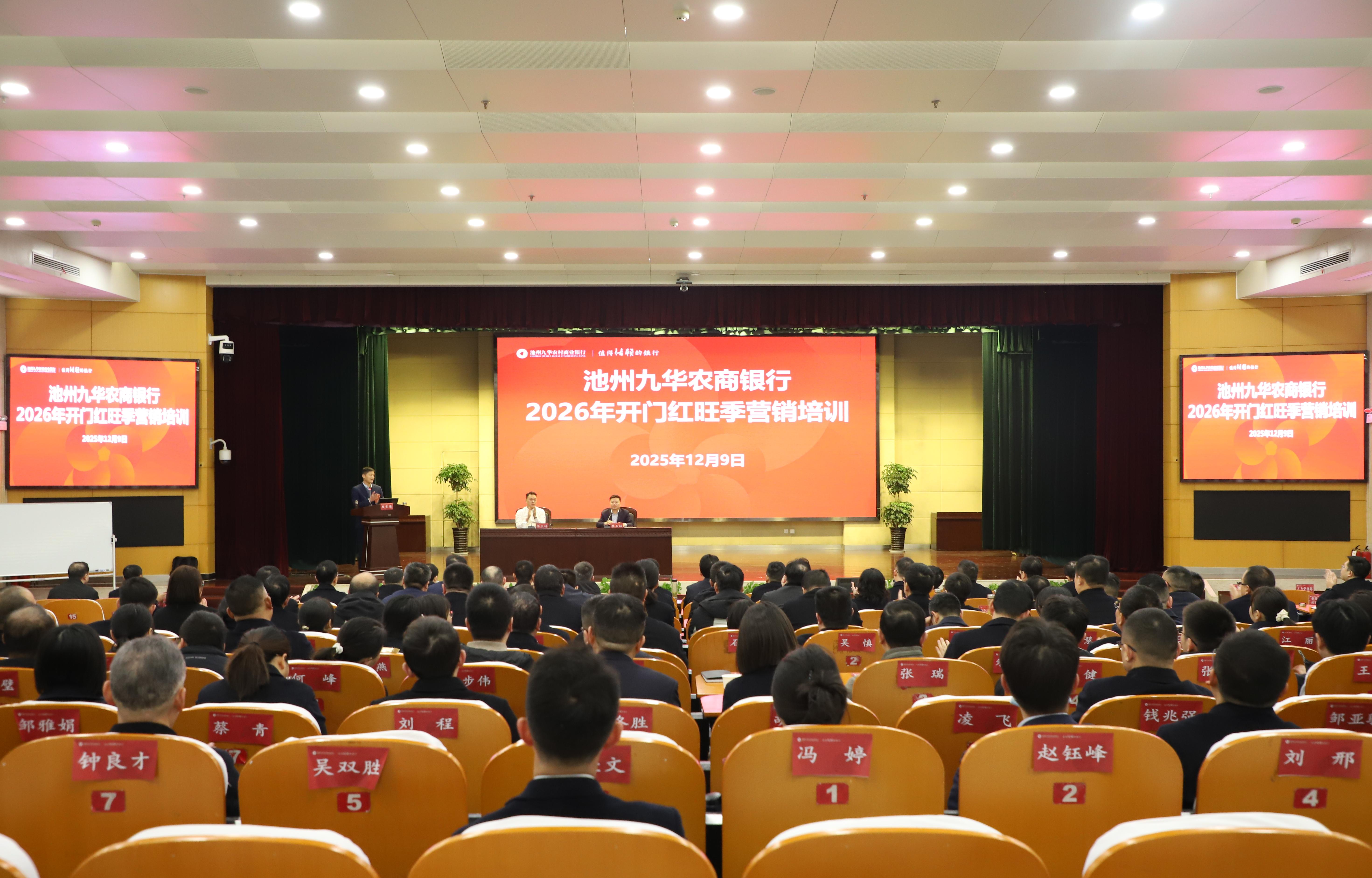 12月9日,池州九华农商银行召开2026年开门红旺季营销培训会。